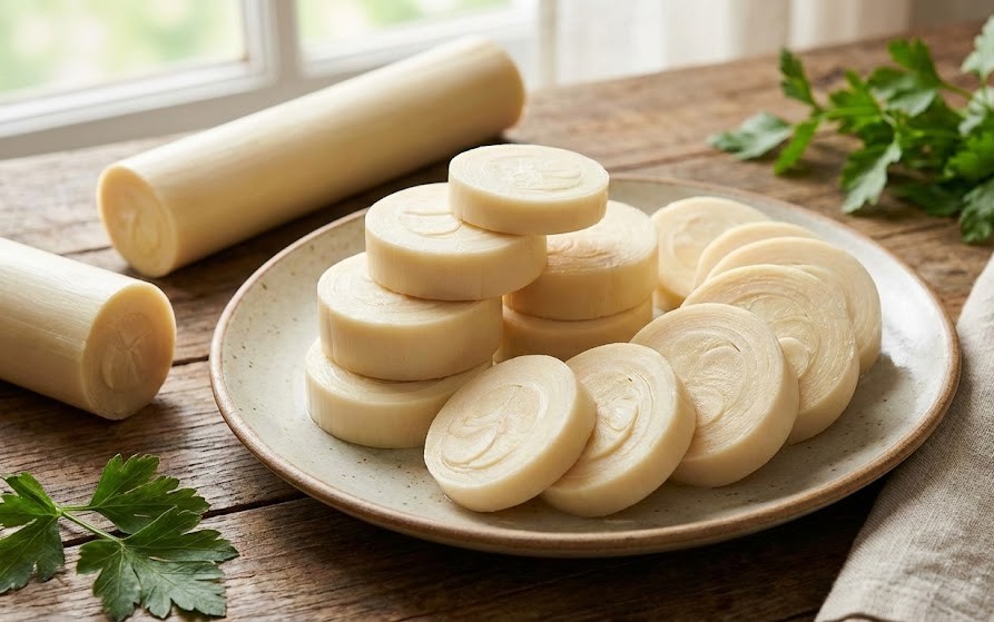 Palmito de calidad premium pre-cortado en rodajas uniformes. Perfecto para optimizar la preparación en cocinas de alto volumen.